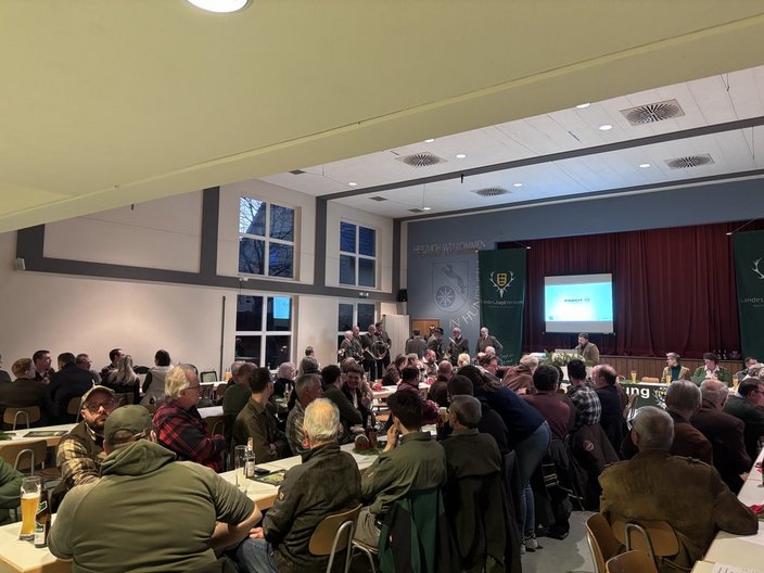 Nach der Pause folgte der Gastredner Benjamin Gut vom LJV mit seinem sehr informativen Vortrag über die Niederwildhege und die Jagdethik. Er wies u.a. darauf hin, dass Saatgutanträge ab dem 1. April nur noch digital einzureichen seien. Ebenso stünden Zuschüsse für Fallenjäger zur Verfügung, allderings müssten die Gelder jedoch vorab reserviert werden. Der Landesjagdverband unterstütze auch beim Anlegen von Biotopen, diese Arbeit sollte jedoch vorher besprochen werden, um Förderanträge erhalten zu können.